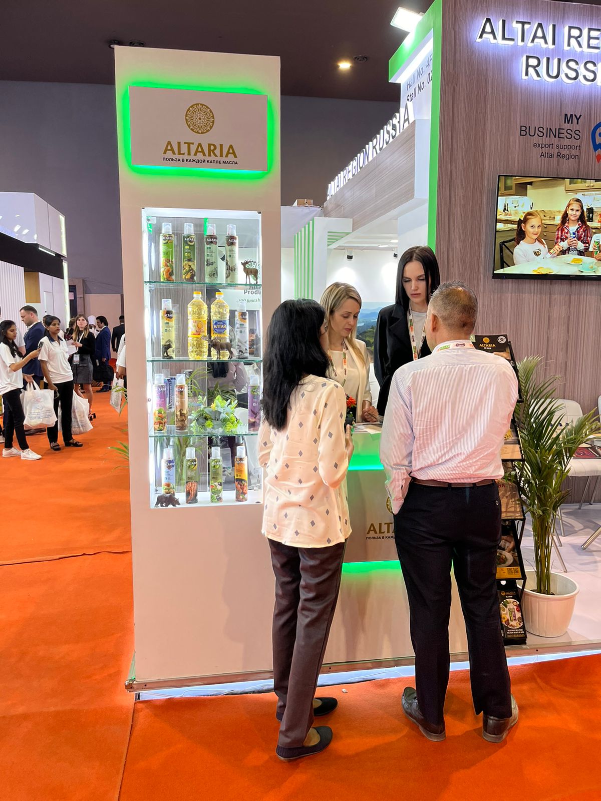 Свою продукцию на стенде представили ООО «Алтария» (масла), ООО «Алтайский пивной дом» (алкогольные и безалкогольные напитки»), ООО «ВК-трейд» (продукция АПК), ООО «ТД Алтан» (макаронные изделия).