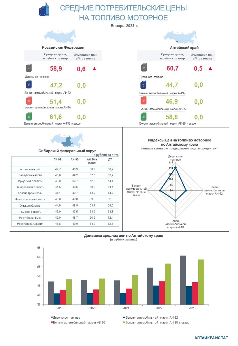 О потребительских ценах на бензин и дизельное топливо в Алтайском крае в январе 2023 года