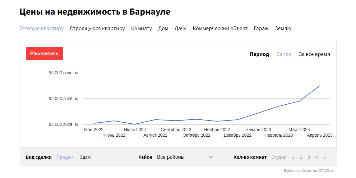В минувшем апреле в Барнауле наблюдались резкие изменения цен на недвижимость в отдельных сегментах.