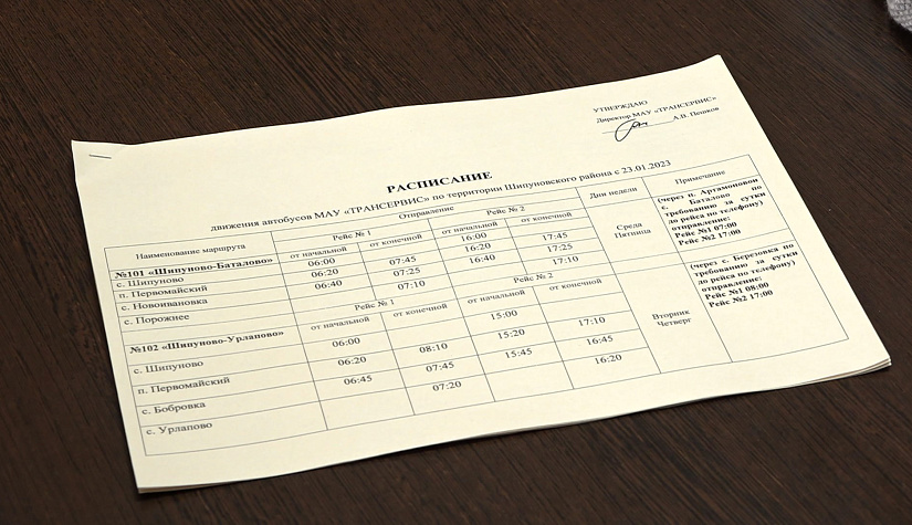 В Шипуновском районе сейчас 11 межпоселковых маршрутов. Их обслуживает шесть новых отечественных автобусов. Их закупили на деньги краевого бюджета в прошлом году. В отличие от многих районов края, в Шипуново не стали сдавать машины в аренду частникам, а с ноля создали своё муниципальное автотранспортное предприятие. Обустроили теплую автостанцию с зоной ожидания и буфетом. Расписание рейсов составили так, чтобы в каждый населённый пункт района автобус заходил минимум дважды в неделю. В ближайших к райцентру сёлах транспортное сообщение ежедневное.