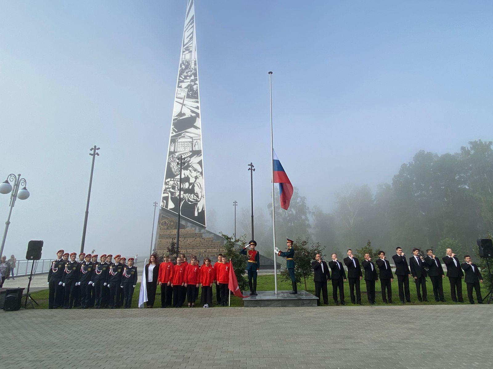 В Нагорном парке у стелы «Город трудовой доблести» состоялась церемония поднятия Государственного флага России. В торжественном мероприятии приняли участие председатель АКЗС Александр Романенко , заместитель Председателя Правительства Алтайского края Игорь Степаненко , главный федеральный инспектор по Алтайскому краю аппарата полпреда в СФО Юрий Земский , заместитель начальника Главного управления МЧС России по Алтайскому краю Николай Егоров , глава города Вячеслав Франк , председатель Барнаульской городской Думы Галина Буевич , представители общественности, духовенства, активисты молодежных объединений, курсанты военно-патриотического клубов, юнармейцы, руководители органов власти, депутаты Барнаульской городской Думы, ветераны и др.