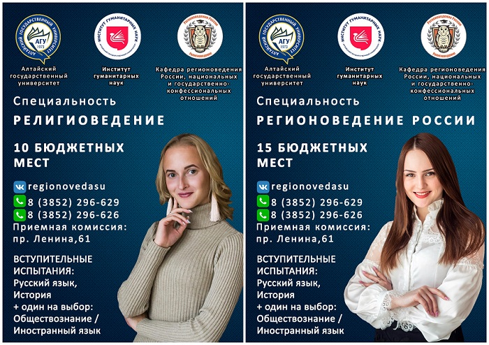 Лучшая кафедра АлтГУ приглашает абитуриентов поступить на бюджетные места по направлениям «Религиоведение» и «Регионоведение России» в Алтайский государственный университет,