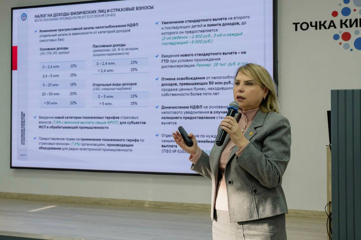 Специалисты налоговой службы Алтайского края продолжают знакомить налогоплательщиков с изменениями законодательства, которые вступили в силу с нового года. Начальник отдела работы с налогоплательщиками УФНС России по Алтайскому краю Татьяна Малютина рассказала студентам экономических специальностей Алтайского государственного университета о введении прогрессивной шкалы налогообложения.