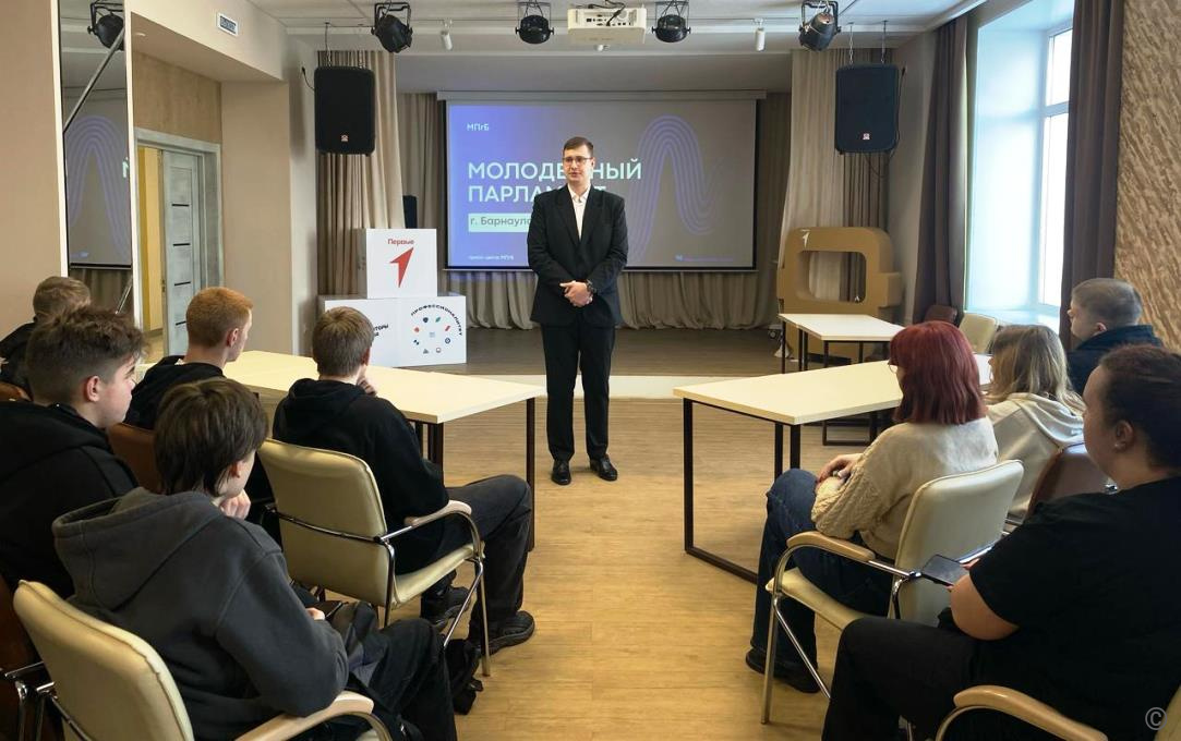 Председатель Молодежного парламента XIII созыва Кирилл Иванов встретился с учащимися Алтайского транспортного техникума.