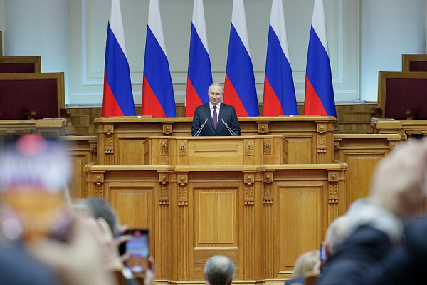 Поздравляю вас с этим праздником и хочу поблагодарить сенаторов и депутатов, всех ваших коллег в регионах Российской Федерации за большую, значимую, результативную работу по созданию прочного законодательного фундамента для эффективного социально-экономического развития нашей страны, повышения качества жизни людей, укрепления суверенитета и безопасности нашего государства.