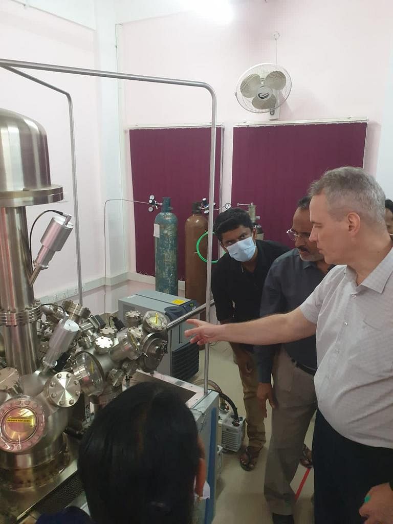 В пятницу, 10 марта, представили АлтГУ побывали в Университете Керала. Сначала они познакомилась с Центром коллективного пользования научным оборудованием (Center for instrumentation and facilitation). В центре, оснащенном широкой линейкой современных научных приборов, ведутся исследовательские работы в интересах различных научных коллективов. Так, в центре имеются рентгеновские дифрактометр, фотоэлектронный и флюоресцентный спектрометры, инфракрасный Фурье-спектрометр, сканирующий электронный микроскоп, ЯМР-спектрометр, ДНК-анализаторы и другое оборудование. Руководитель центра, профессор Г. М. Наир рассказал о системе организации работ и основных решаемых на базе центра задачах.