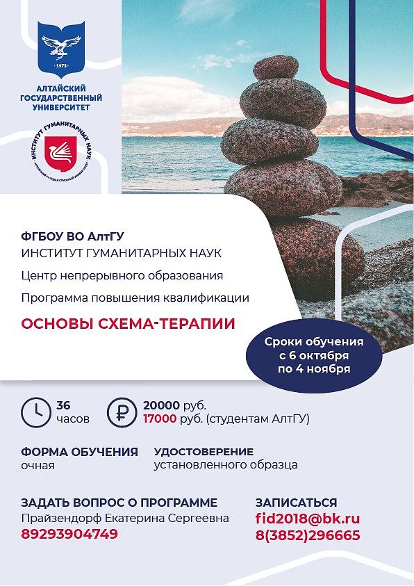 Центр непрерывного образования Института гуманитарных наук Алтайского государственного университета объявляет набор на программу повышения квалификации «Основы схема-терапии».
