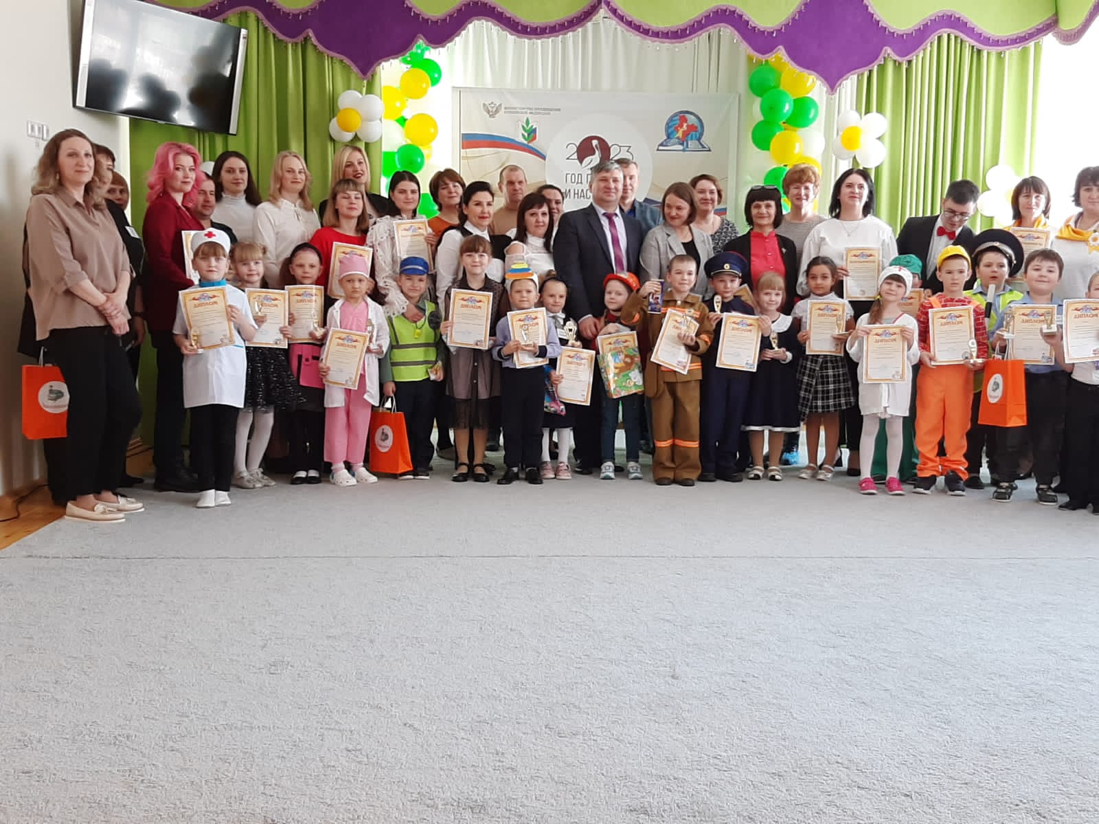 Все волнения позади. Испытания закончены. Все присутствующие окунулись в атмосферу праздника и детства, где сбываются самые заветные мечты. Детство – это удивительный мир, где, будучи ребенком, можно мечтать о своём будущем. Сегодня маленькие профессионалы продемонстрировали свое мастерство в профессии воспитателя, врача, инспектора ГИБДД, официанта, строителя, пожарного, стилиста-визажиста. Каждый участник в своей номинации получил диплом, статуэтку и небольшой подарок от членов жюри. Но на этом сюрпризы не закончились. Коллектив детского сада «Ромашка» приготовил сладкий подарок, участники и их наставники, члены жюри были приглашены для чаепития. ФОТОАЛЬБОМ