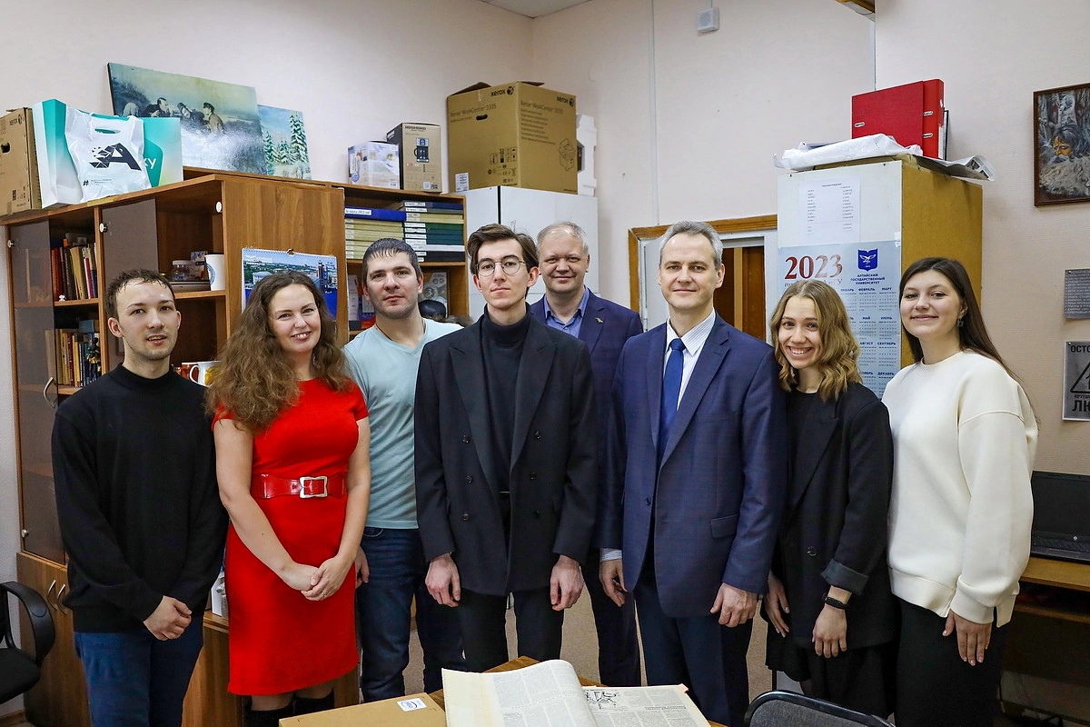 Ректор Сергей Бочаров и проректор по цифровой трансформации и медиакоммуникациям Максим Герасимюк поздравили университетскую газету «За науку» с 43-летием. За это время редакция воспитала многих известных журналистов, которые трудятся в Алтайском крае и за его пределами. ЗН — неоднократный лауреат всероссийских профессиональных конкурсов среди студенческих СМИ.