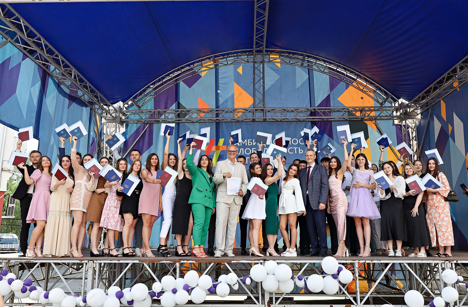 – В такой чудесный день поздравляю вас с окончанием важного пути. Вы получили образование в лучшем институте, в лучшем университете края! Впервые мы вручаем дипломы сразу всем студентам: очной и заочной формы, бакалаврам и специалистам, магистрантам и аспирантам – а это без малого 300 студентов! Помимо этого свыше 150 человек получат дипломы о переподготовке – практически второе высшее образование. Это мощный старт для карьеры наших выпускников. Очень рад, что у нас учились такие замечательные ребята! Было много интересного, полезного – мероприятия, конкурсы. И сложная учеба: дистанционные пары, пандемия, стресс. Но после этого мы вышли вооруженные новыми цифровыми навыками, стали уверенно чувствовать себя с интернет-коммуникациями. Буду рад видеть вас в МИЭМИС на следующих ступенях образования. У вас будут новые цели, новые задачи и вызовы – это всегда вдохновляет. Желаю только успехов, только вперед и только удачи!