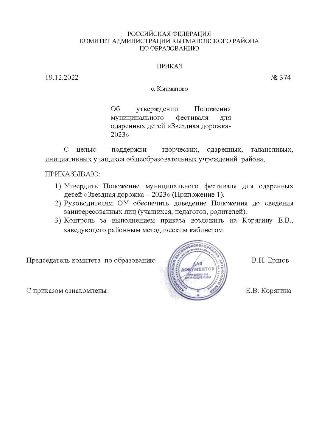 Утверждено Положение муниципального фестиваля для одаренных детей "Звездная дорожка- 2023"