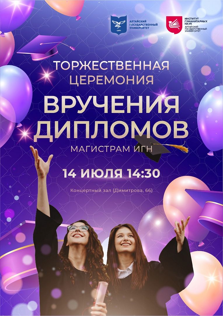 Торжественная церемония чествования выпускников ИГН 2023 года состоится 14 июля в концертном зале АлтГУ: