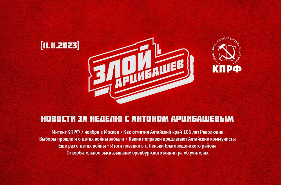 Смотрите очередной выпуск авторской программы депутата АКЗС, секретаря по оргвопросам Алтайского крайкома КПРФ Антона Арцибашева.
