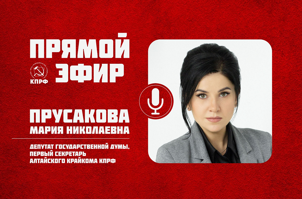 Депутат Госдумы, первый секретарь Алтайского крайкома КПРФ Мария Прусакова сегодня, 25 декабря, выступила в прямом эфире на ютуб-канале Алтайского крайкома КПРФ.