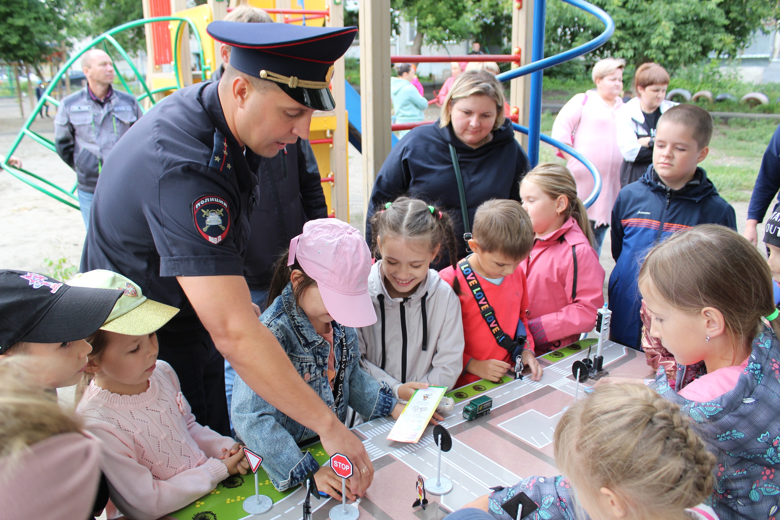 Так 14 августа во дворе дома № 305 по улице Юрина в вечернее время, проведена встреча со взрослыми и детьми гуляющими на детской площадке. Автополицейские повторили с ребятами и их родителями правила безопасности во дворовых территориях, особое внимание уделив припаркованному транспорту возле подъездов, где ограничена видимость, напомнили правила перехода проезжей части, разобрали дорожные ситуации на макете автогородка, провели викторину по ПДД, а также проверили знание дорожных знаков.