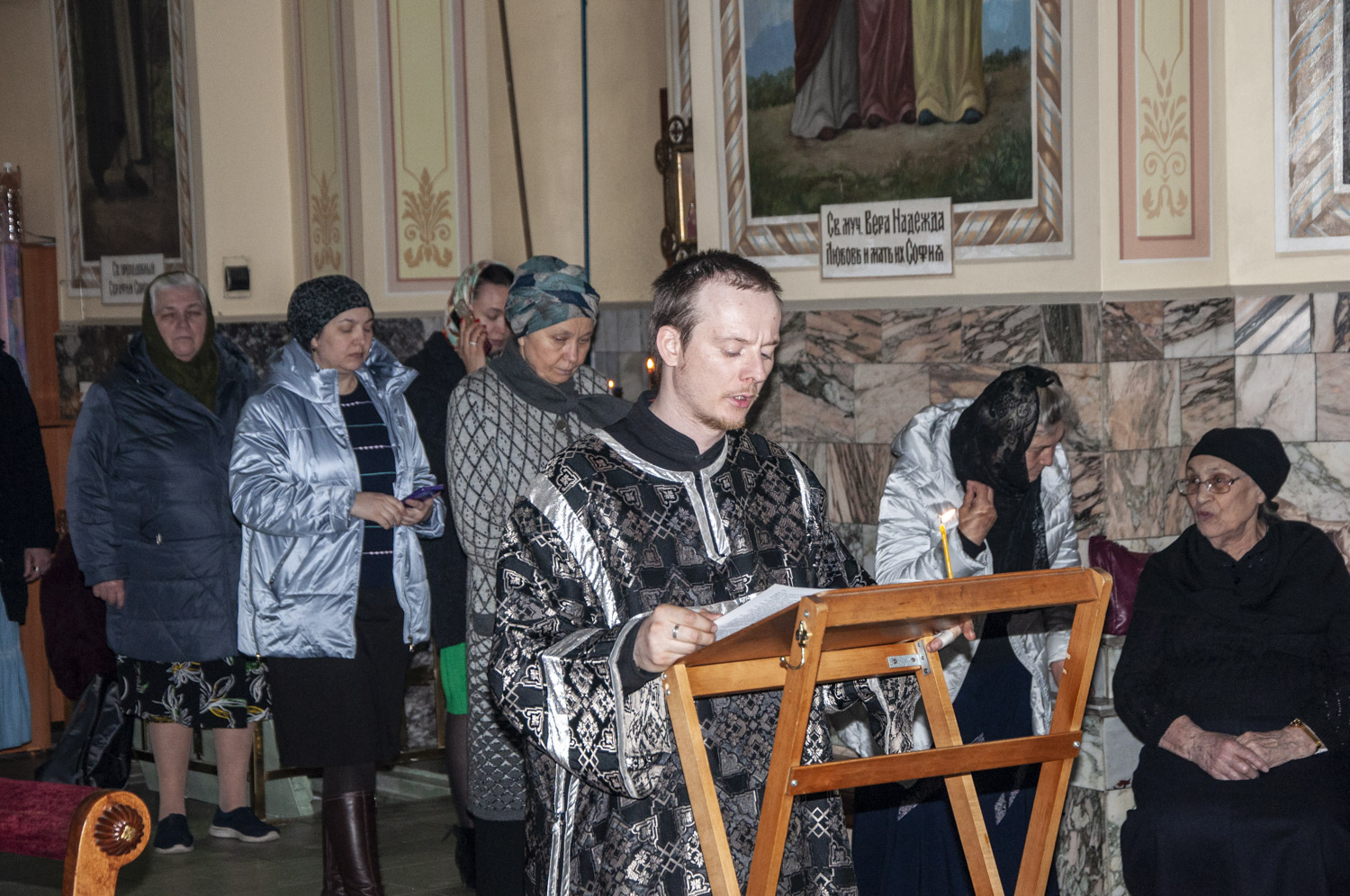 По возвращении в храм была прочитана паремия (ветхозаветное пророчество) из книги пророка Иезекииля о всеобщем воскресении мертвых, а затем – зачало из послания святого апостола Павла к Коринфянам, в котором говорилось об искупительном значении Крестной смерти Господа Иисуса Христа. После апостольского чтения был пропет Аллилуарий со стихами из псалтири, которые возвещают о победе Христа Спасителя над державой ада, подводят нас к преддверию праздника Пасхи: «Да воскреснет Бог и расточатся врази Его и да бежат от лица Его ненавидящии Его!».
