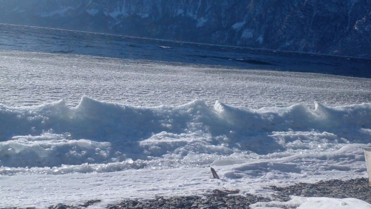 На кадрах видно, что берег покрыт снегом и льдом, а поверхность воды свободна от ледяных оков.