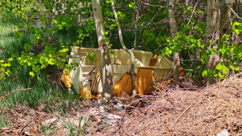 Дебри "логова" маньякаМы же отправляемся в дебри лесополосы, коих оказалось не так много, как представлялось до этого. Зато мусора здесь предостаточно. Он свален кучами на траве и среди деревьев. Из него даже собрали место для отдыха с креслами и матрасами.
