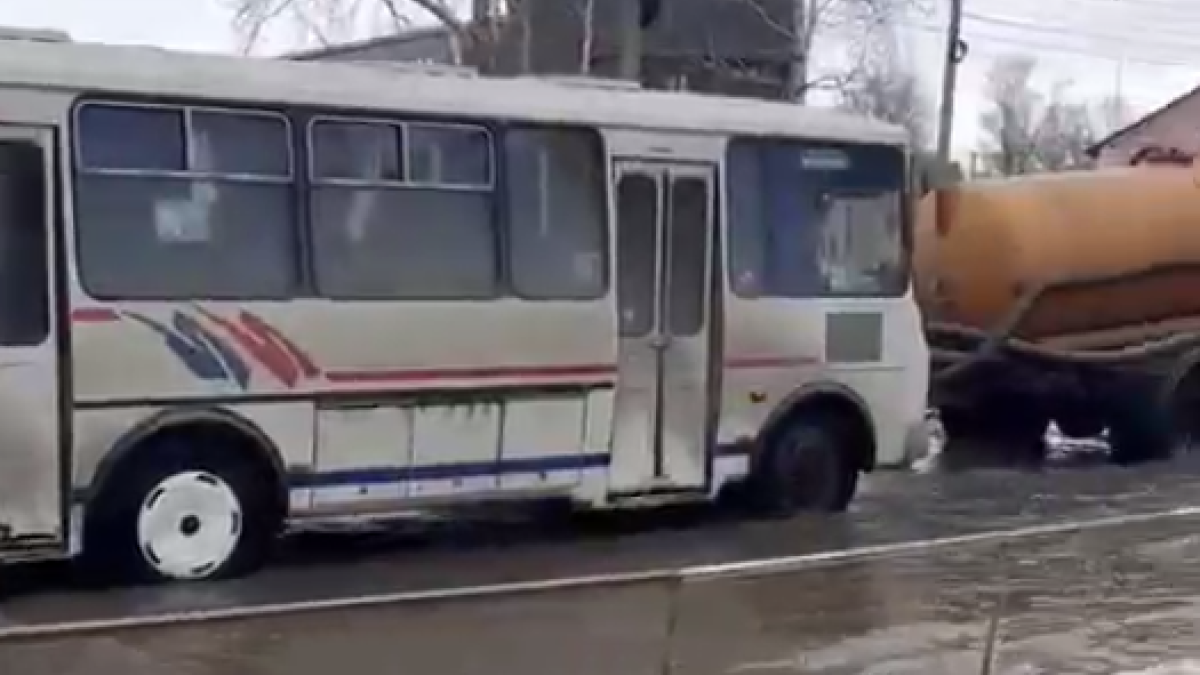 В Бийске автобус с пассажирами заглох в глубокой луже