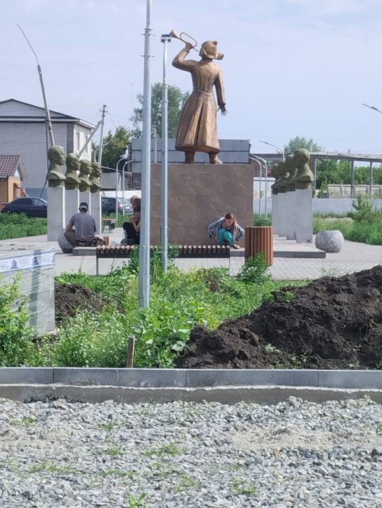Примечательно, что события в строящемся по национальному проекту парке происходили в разгар дня. Без всякого стеснения группа молодых людей расположилась в теньке скульптуры горниста, которая была установлена прошлой зимой. Часть компании что-то выпивала. Одна из девушек решила не уходить далеко, чтобы справить нужду и сделала это сразу за другим углом подножия скульптуры.