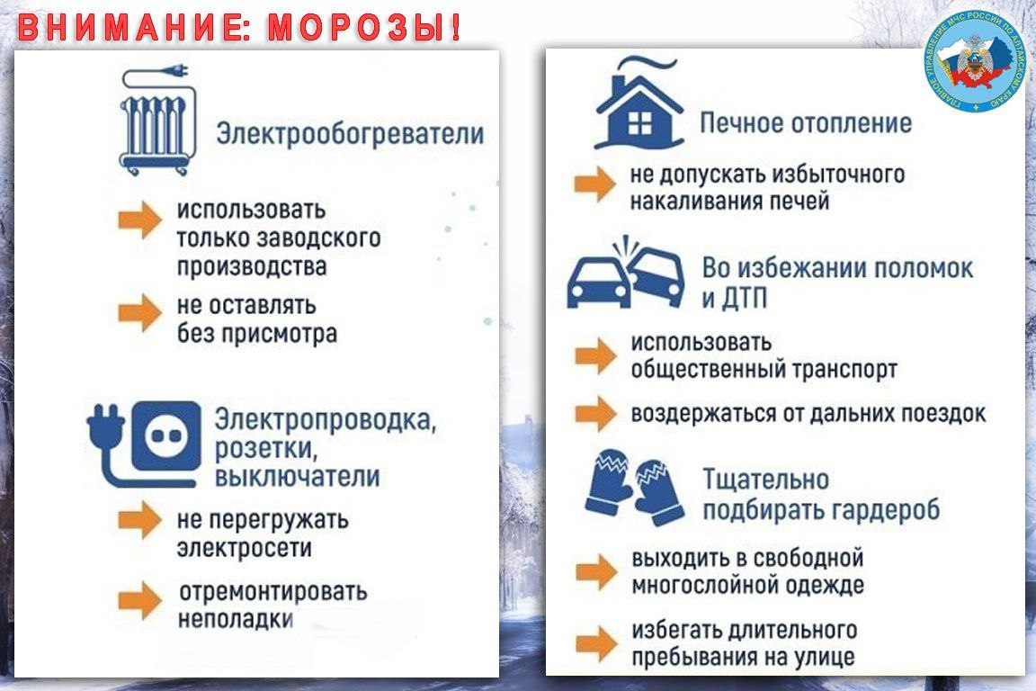 Работниками 30 ПСЧ 3 ПСО в связи с морозами проводятся профилактические работы, направленные на снижение количества пожаров в Тальменском районе. С 19 по 23 февраля 2024года получено штормовое предупреждение о неблагоприятных условиях: в Алтайском крае с 19 по 23 февраля ожидается понижение температуры воздуха, местами до -35 гр. и ниже. Призываем граждан соблюдать правила безопасного поведения.