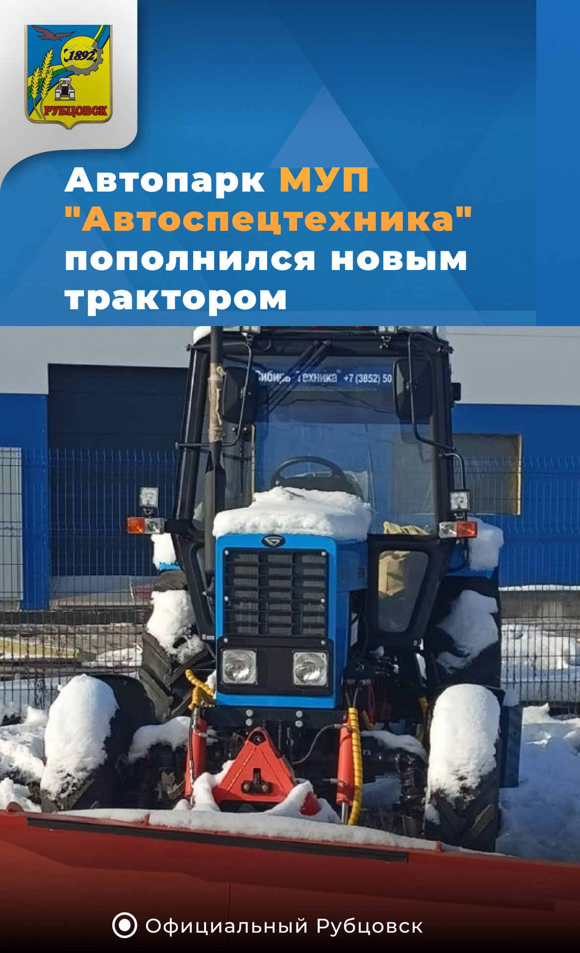 Сегодня парк коммунальной техники города Рубцовска пополнился еще одной единицей - трактором МТЗ 82.1, оснащенным снегоуборочным отвалом и подметальной щеткой.
