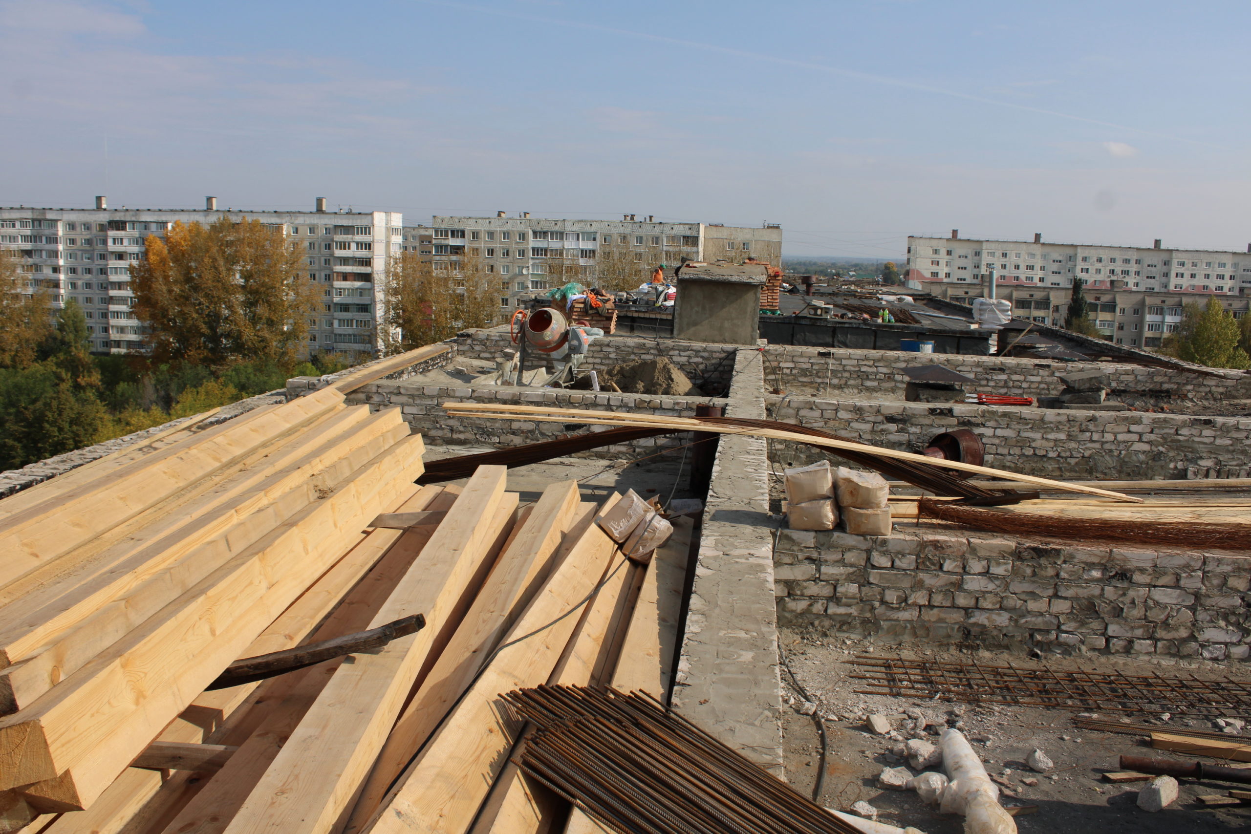 На кровле работы идут полным ходом. Строительная бригада занимается демонтажем старого покрытия и кирпичной кладки. Следующим этапом станет выравнивание поверхности и залив стяжки, а только затем — монтаж деревянного каркаса, на который будет установлен металлопрофиль. По проекту на стационаре будет сделана двускатная крыша — точно такая же, как и на поликлинике. На это выделено 17,5 млн рублей. До конца года ремонтные работы будут завершены.
