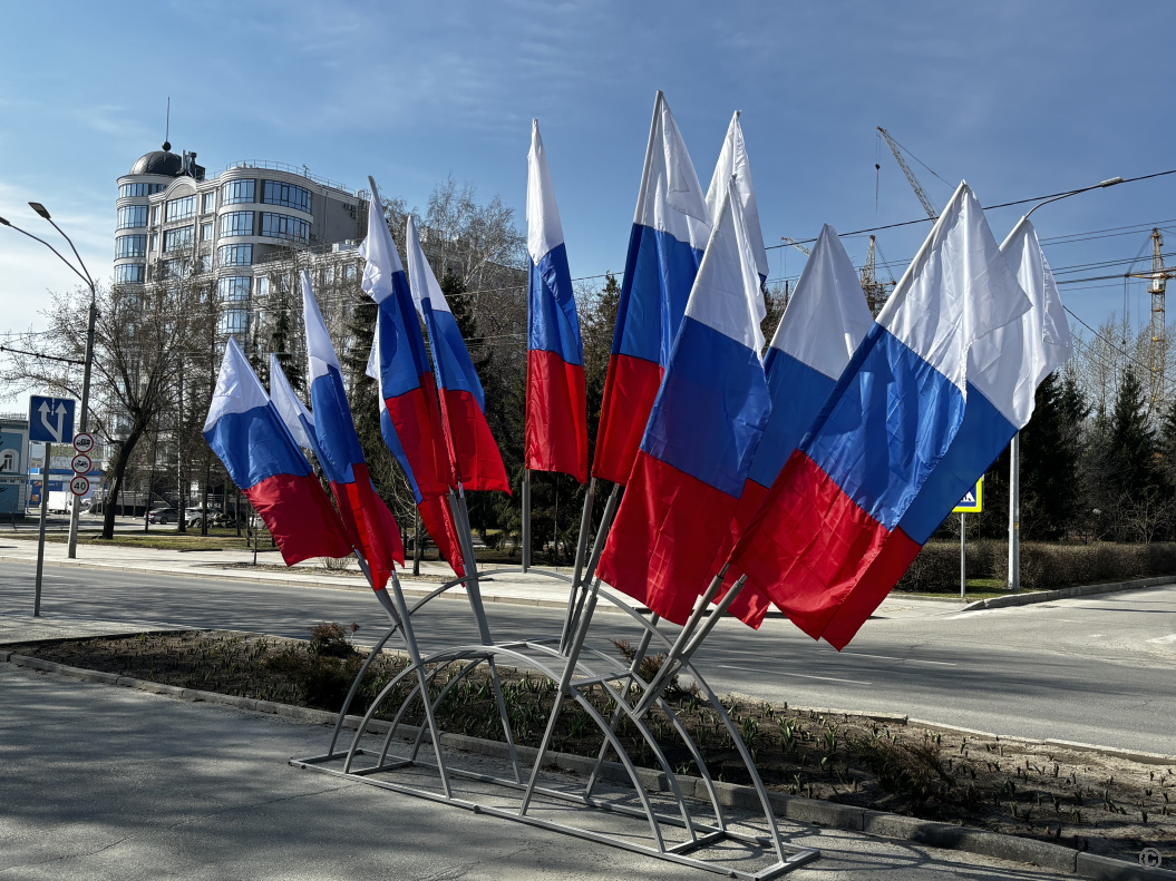 Флаговые композиции размещены на опорах трамвайной сети по Змеиногорскому тракту, ул.Аванесова и пр-кту Красноармейскому до границы с Железнодорожным районом, а также на уличных фонарях по пр-кту Ленина от ул.Димитрова до площади им.В.Н.Баварина.