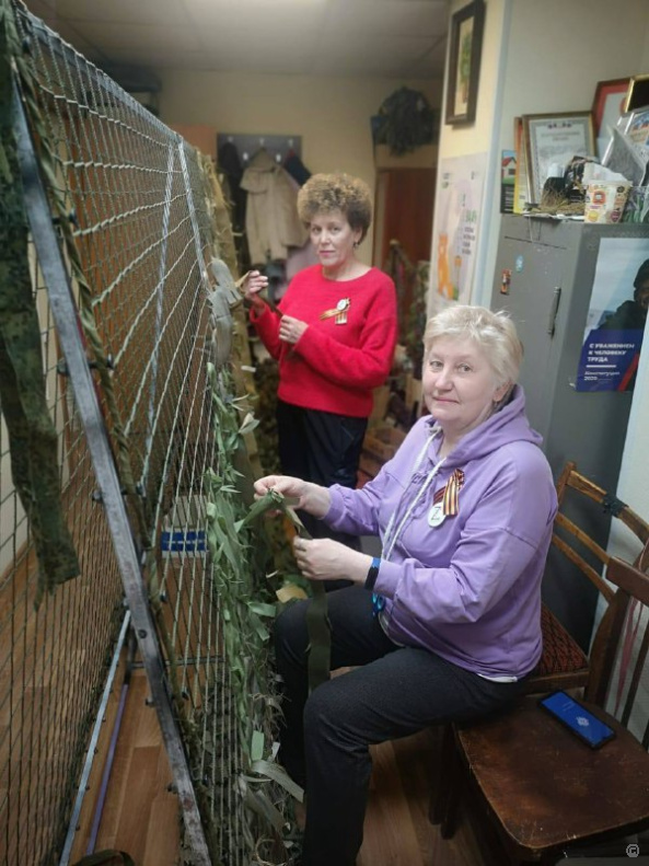 Активисты ТОС «Урожайный» также проводят большую работу по сбору гуманитарной помощи для участников СВО, участвуют в плетении маскировочных сетей и нашлемников для бойцов.