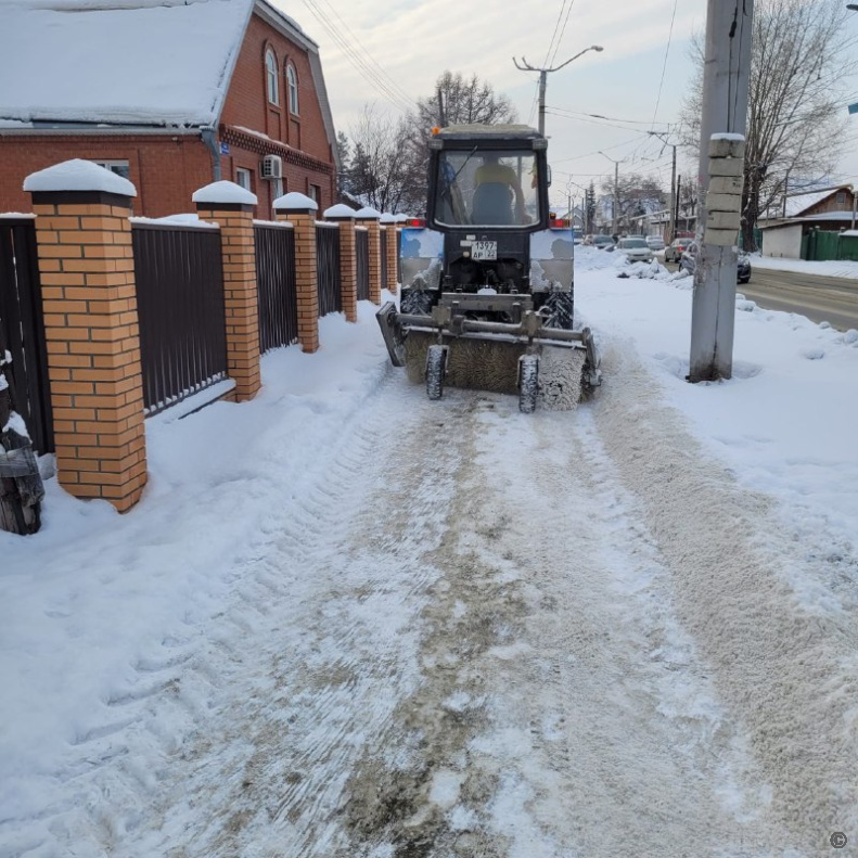Прометание тротуаров проводится на улице Крупской, Молодежной, Профинтерна, 1905 года, Ткацкой. проспектах Строителей, Красноармейском и на других участках уличной сети города.