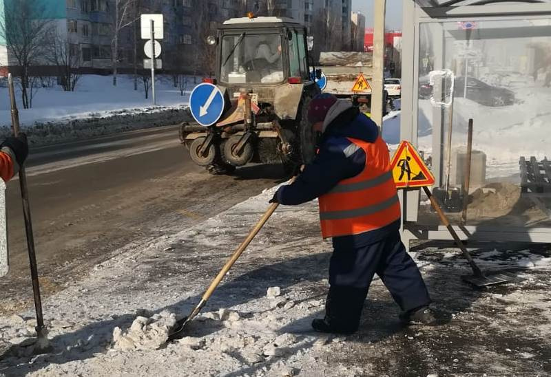 В Барнауле дорожные службы в плановом порядке проводят работы по очистке дорог от снега и наледи, уделяя особое внимание тротуарам, подходам к пешеходным переходам, остановочным площадкам.