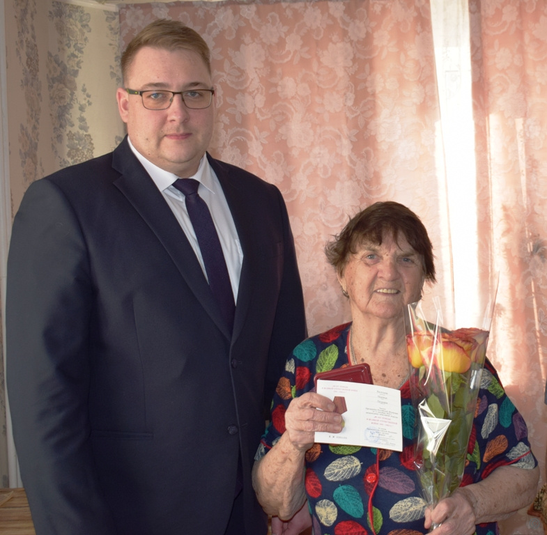 20 февраля глава администрации Индустриального района Денис Летягин вручил юбилейные медали «80 лет Победы в Великой Отечественной войне 1941-1945 гг.» жителям блокадного Ленинграда Надежде Петровне Васильевой,