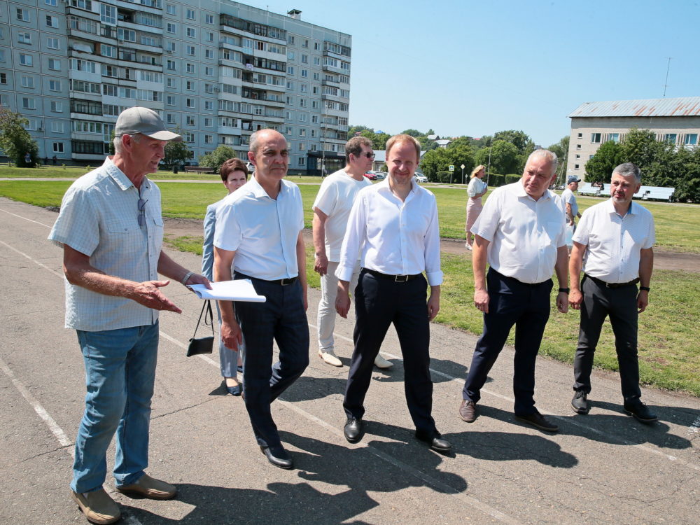 Губернатор Виктор Томенко во время визита в Белокуриху осмотрел городской стадион, который нуждается в реконструкции.