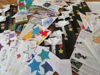 Более 200 писем были переданы с военнослужащими воинской части 41659, которые накануне праздника вернулись на передовую. Оригинально оформленные послания ребят: солдатские треугольники, мундиры с золотыми звездами героев, конфеты, «одетые» в солдатскую форму, рисунки - не оставят никого равнодушными. Кто-то написал своему отцу, брату, товарищу, кто-то - незнакомому солдату. В письмах слова поддержки, пожелания здоровья, веры, терпения, восхищение мужеством и героизмом. Главное, что хотели передать ребята - это то, что все гордятся героями, которые отстаивают рубежи Родины, переживают за них, ждут скорейшего возвращения, верят в их победу: «Гордимся всем, что вы делаете для своей земли, для своих родных и близких, для своей страны!»