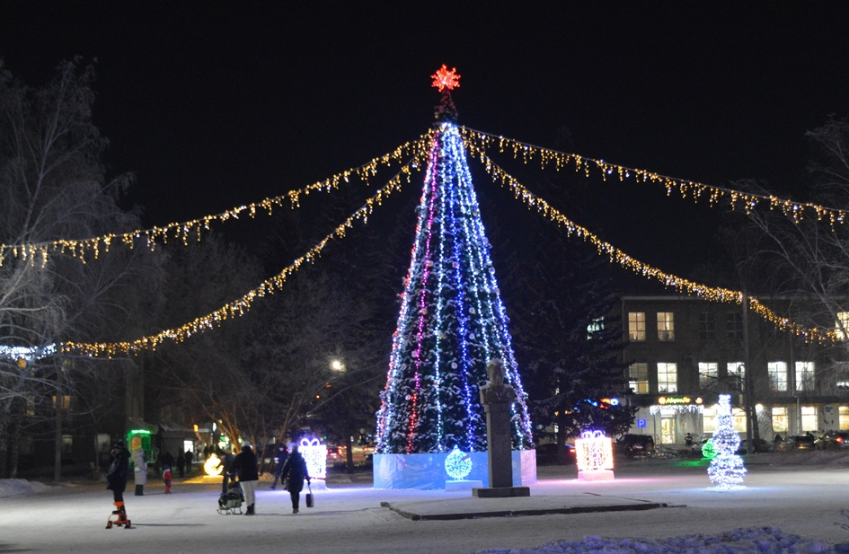 Красочные инсталляции и 14-метровая ель украшают новогодний городок Октябрьского района