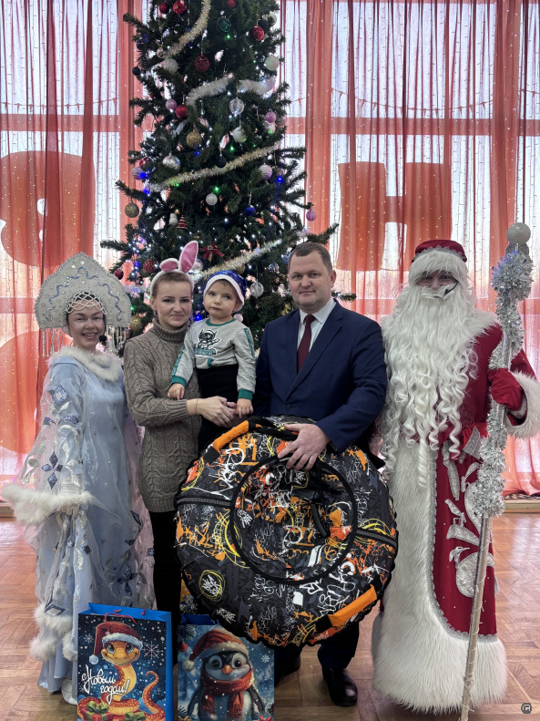 Вместе со сказочными героями – Дедом Морозом и Снегурочкой он вручил мальчику долгожданный подарок – любимые надувные санки.Максим Сабына поздравил семью, пожелал им счастья и благополучия в наступающем году.