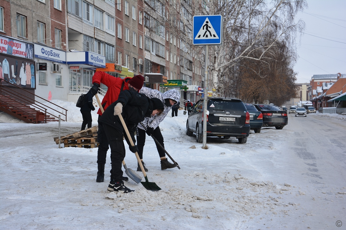Общественники Ленинского района и студенты помогают в устранении снегопада и гололеда
