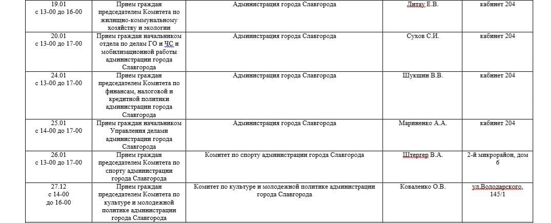 Прием граждан председателями комитетов и начальниками отделов администрации города Славгорода Алтайского края