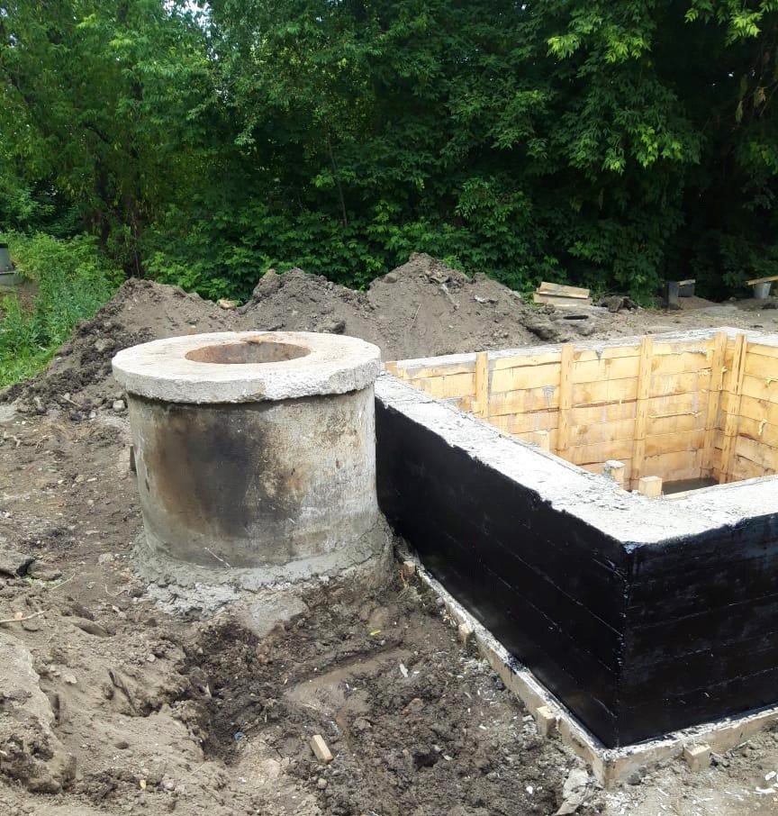 монтаж главного приемного колодца с установкой сороудерживающей решетки.
