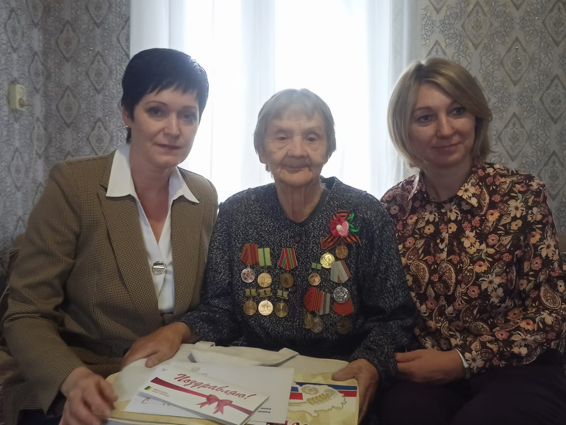 Именинницу с юбилеем поздравили заместитель главы муниципального округа Евгения Рычко и заместитель начальника КГКУ «Управления социальной защиты населения по г. Славгороду, Яровому, Бурлинскому и Табунскому районам" Наталья Якушева.