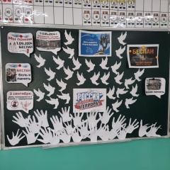 В эту траурную дату учителя и ученики вспомнили о тех, кто погиб от рук террористов, как в Беслане, так и при других трагических событиях, связанных с проявлением терроризма на территории Российской Федерации.