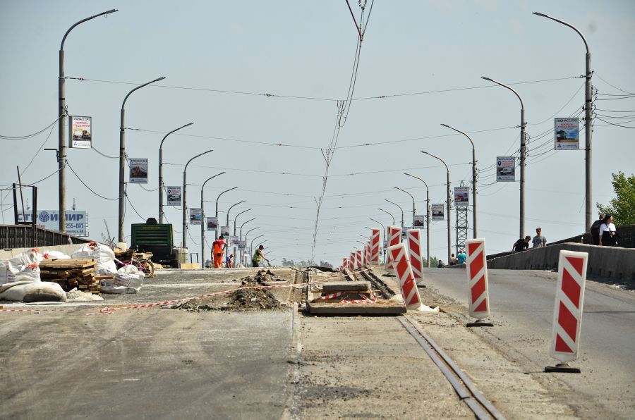 Ремонт коммунального моста в Бийске Фото: Сергей Кулыгин, "БР"На стороне моста, которая ближе к истоку, также отремонтированы 26 деформационных швов, заменены более 70 бетонных лотков. Далее подрядчик приступит к монтажу трамвайных путей. Как только будут уложены рельсы, эту полосу откроют для движения, а работы начнутся на соседней.