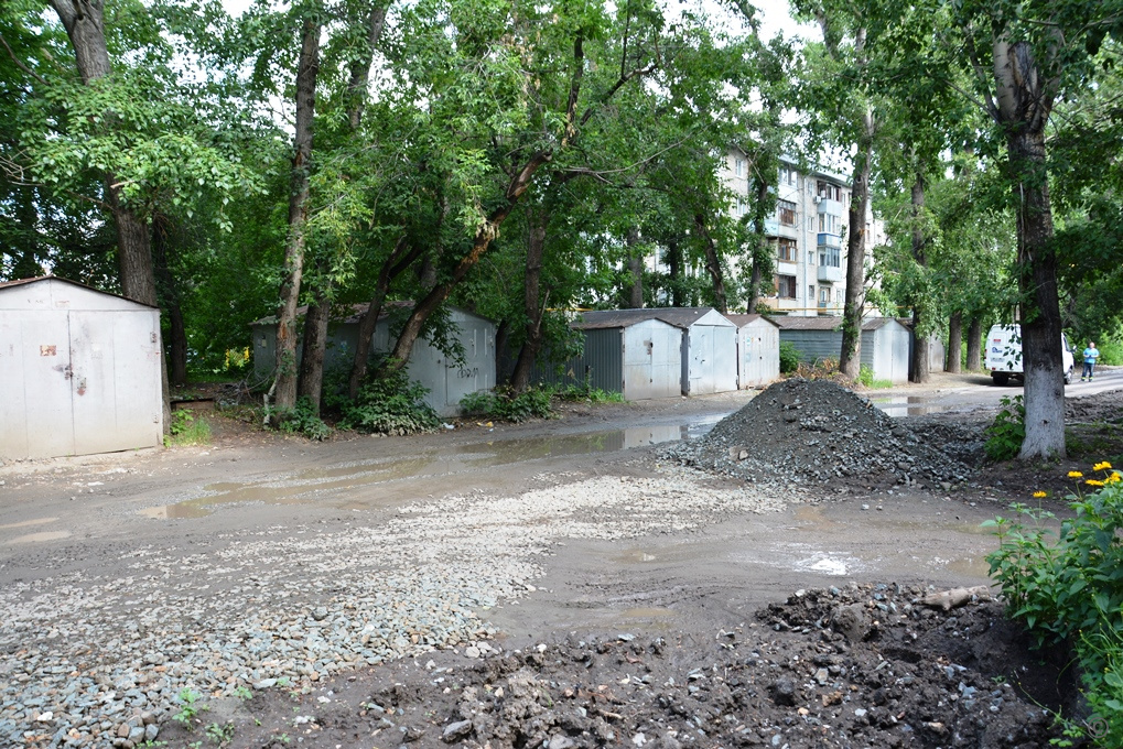 В настоящее время на данном участке выполнены работы по щебенению. В срок до 15 июля планируется вывезти инертный материал и восстановить асфальтовое покрытие участка проезда, где проводились земляные работы.