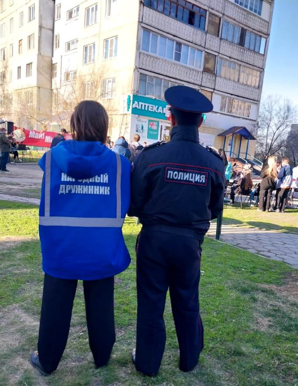 Начиная с 1 по 12 мая народные дружинники Ленинского района совместно с сотрудниками полиции осуществляли охрану общественного порядка на Аллее Победы.