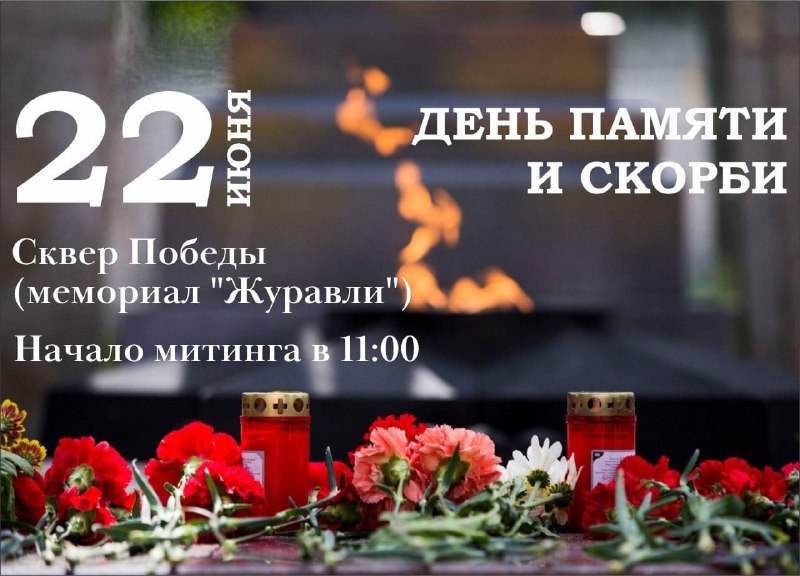 22 июня в 11.00 в сквере Победы (мемориал «Журавли») состоится мероприятие «Шагнувшие в бессмертие», посвященное Дню памяти и скорби.