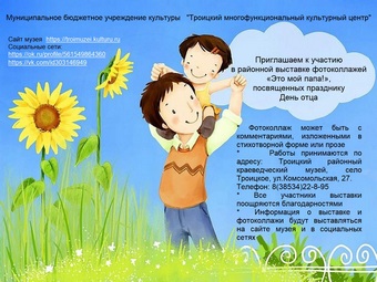 Отдел по культуре объявляет о проведении районной выставки фотоколлажей «Это мой папа», посвященной Дню отца.
