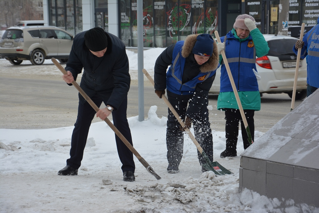 Волонтерские акции с участием студентов и общественников по очистке территории от снега и наледи прошли на территории Ленинского района