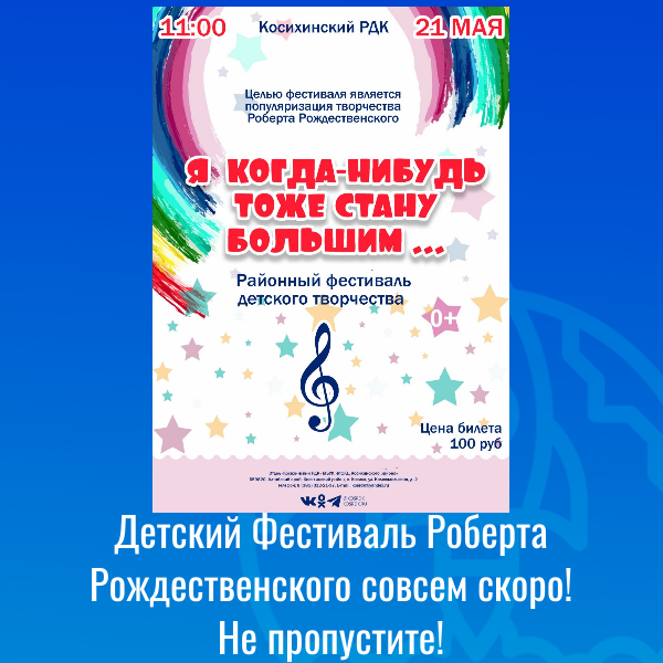Приглашаем вас 21 мая на заключительный концерт районного фестиваля «Я когда-нибудь тоже стану большим…».