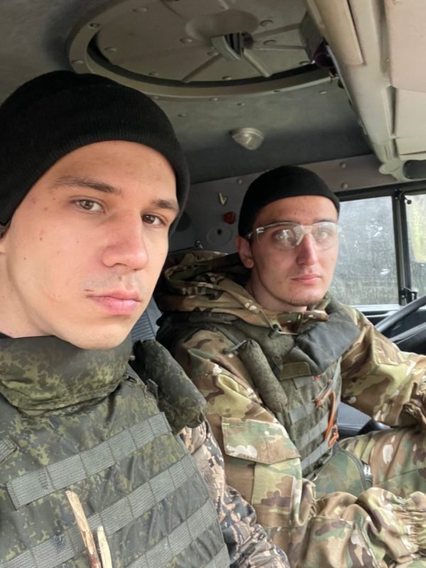 Роман Запольский (слева) с боевым товарищем Иваном Гаевским. Апрель 2022 года, ДНР. Фото из архива Романа Запольского.