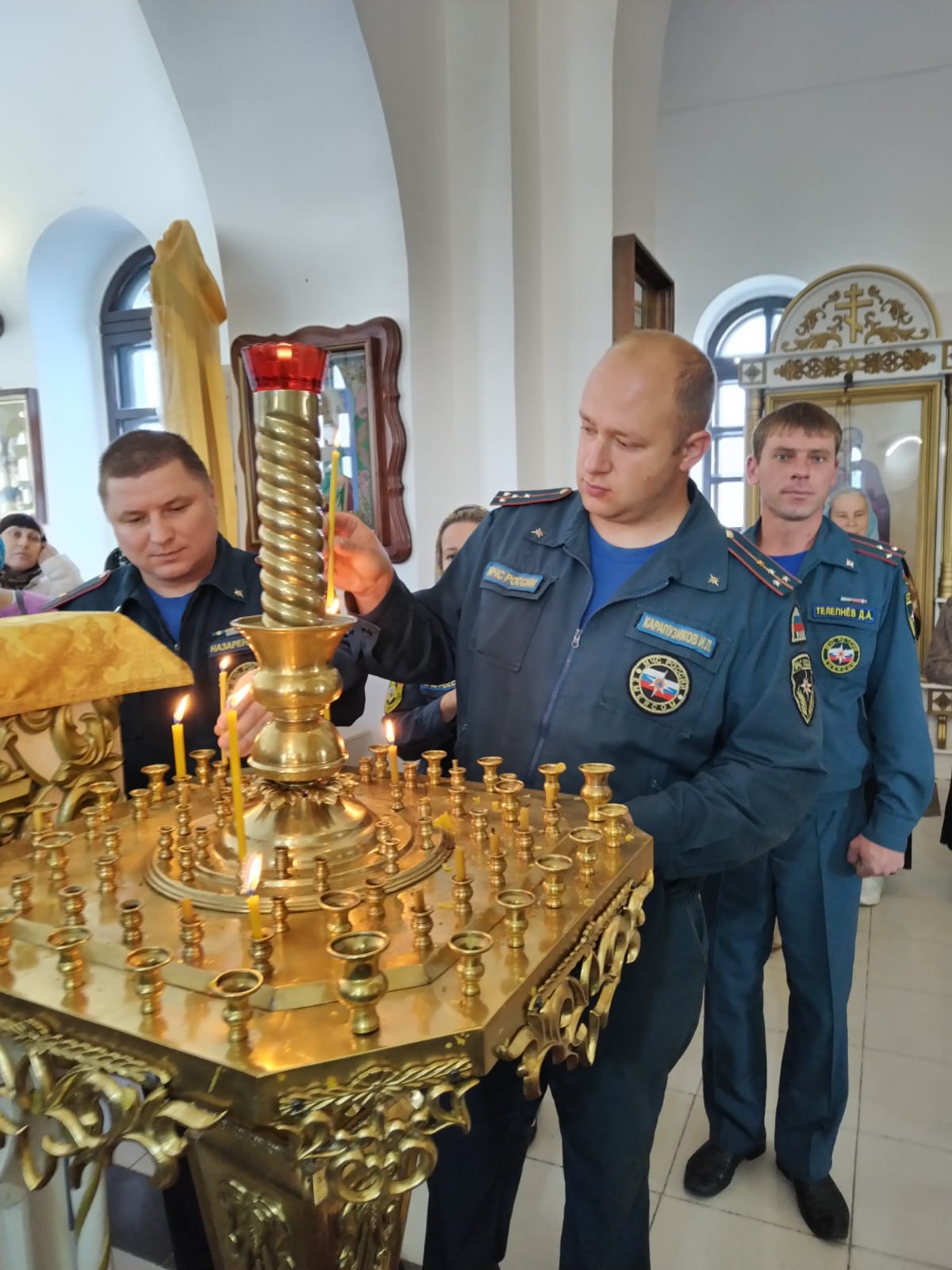Вознести молитвы и почтить память своих коллег, погибших при исполнении служебного долга пришли сотрудники МЧС России г. Заринска.